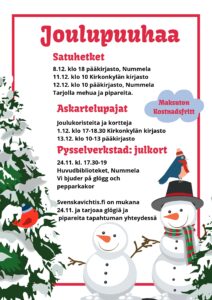 Vichtis Svenska Förening rf samordnar med Nummelas huvudbibliotek julkorts pysselverkstad.